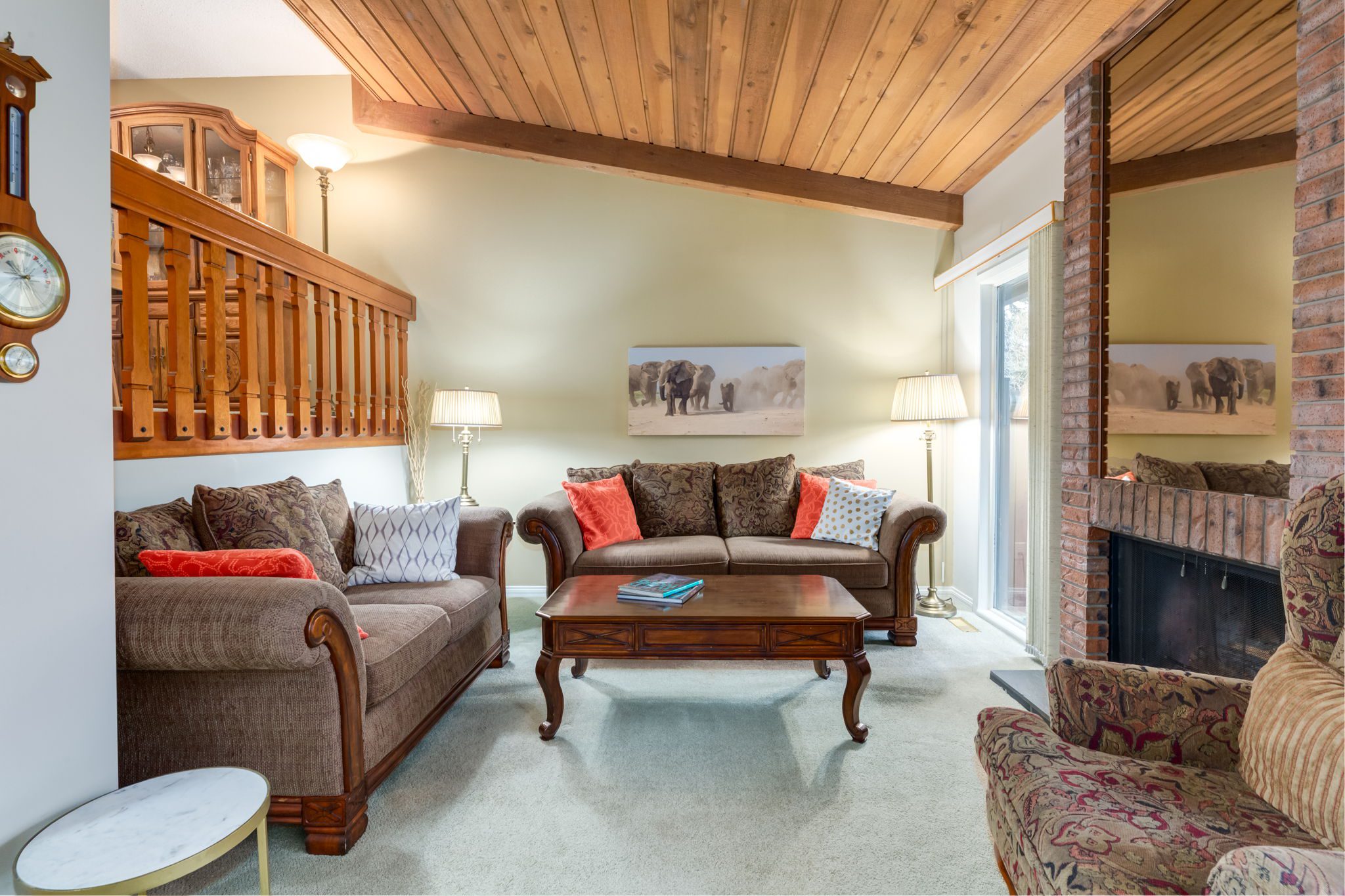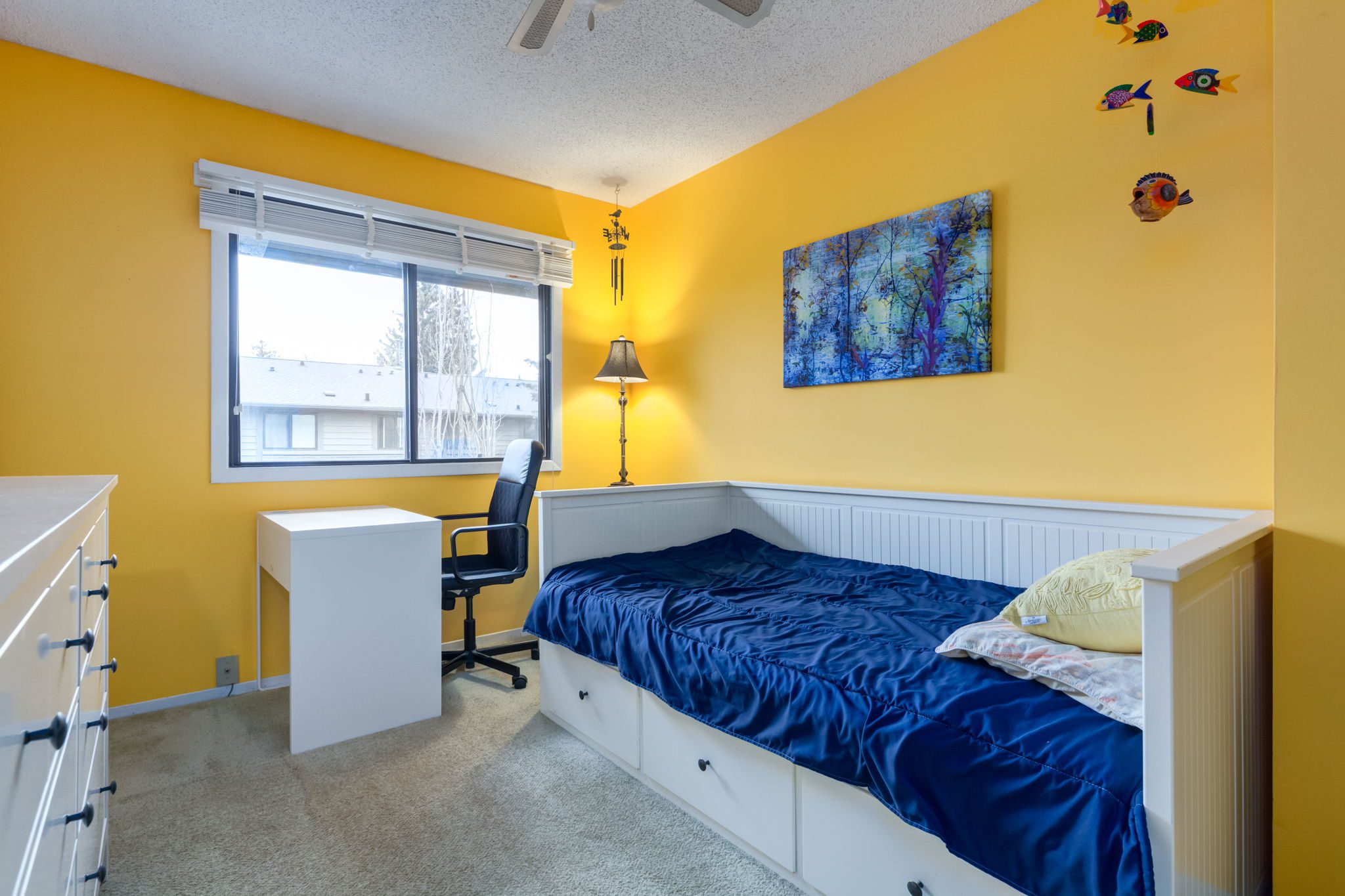 Welcome to Oakwood Lane located in the community of Oakridge. This beautiful corner 4 level split townhouse with no neighbors behind features a main floor with carpet and updated laminate flooring throughout. Large living room with gorgeous vaulted wood ceilings, wood fireplace surrounded by brick giving off a cozy ambiance and access to a west facing concrete patio and private yard. Updated kitchen with granite countertops, elegant mocha cabinets and pantry. Breakfast nook with built in cabinetry and access to a large deck. Large dining room with open to below of the living room and 2pc bathroom. The upper level features the primary bedroom with plenty of closet space and 2pc ensuite. Two other good sized bedrooms and full 4pc bathroom. The basement is fully finished with a recreation room and large under level storage. Main entry storage and laundry room and double attached garage with a gas heater and a small driveway. Just minutes from Glenmore reservoir, shopping, schools, restaurants and walking paths. Easy access to Stoney Trail, Costco and Rockyview Hospital. This is a must see unit. Don’t miss out on this opportunity. Make your private showing today.